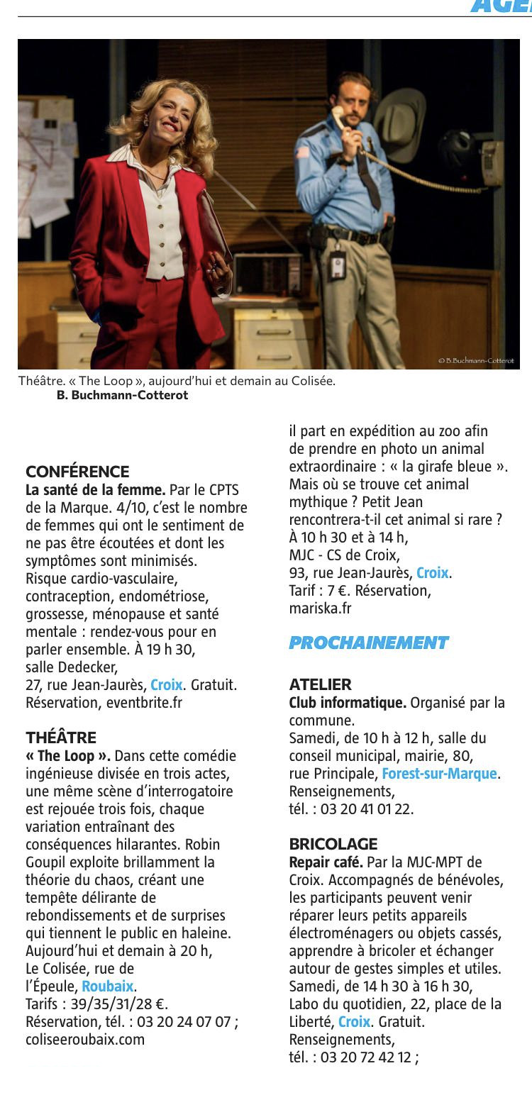 - Colisée Roubaix France3 Hauts-de-France ICI : Christine Defurme nous présente son agenda du week-end