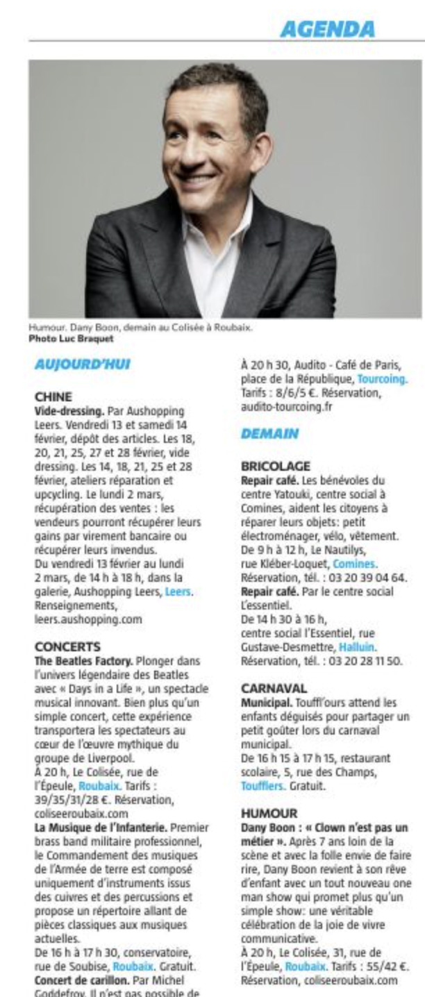 - VOIX DU NORD Mercredi 11 janvier 2024 Qui veut monter avec Edouard Baer sur la scène du Colisée ?