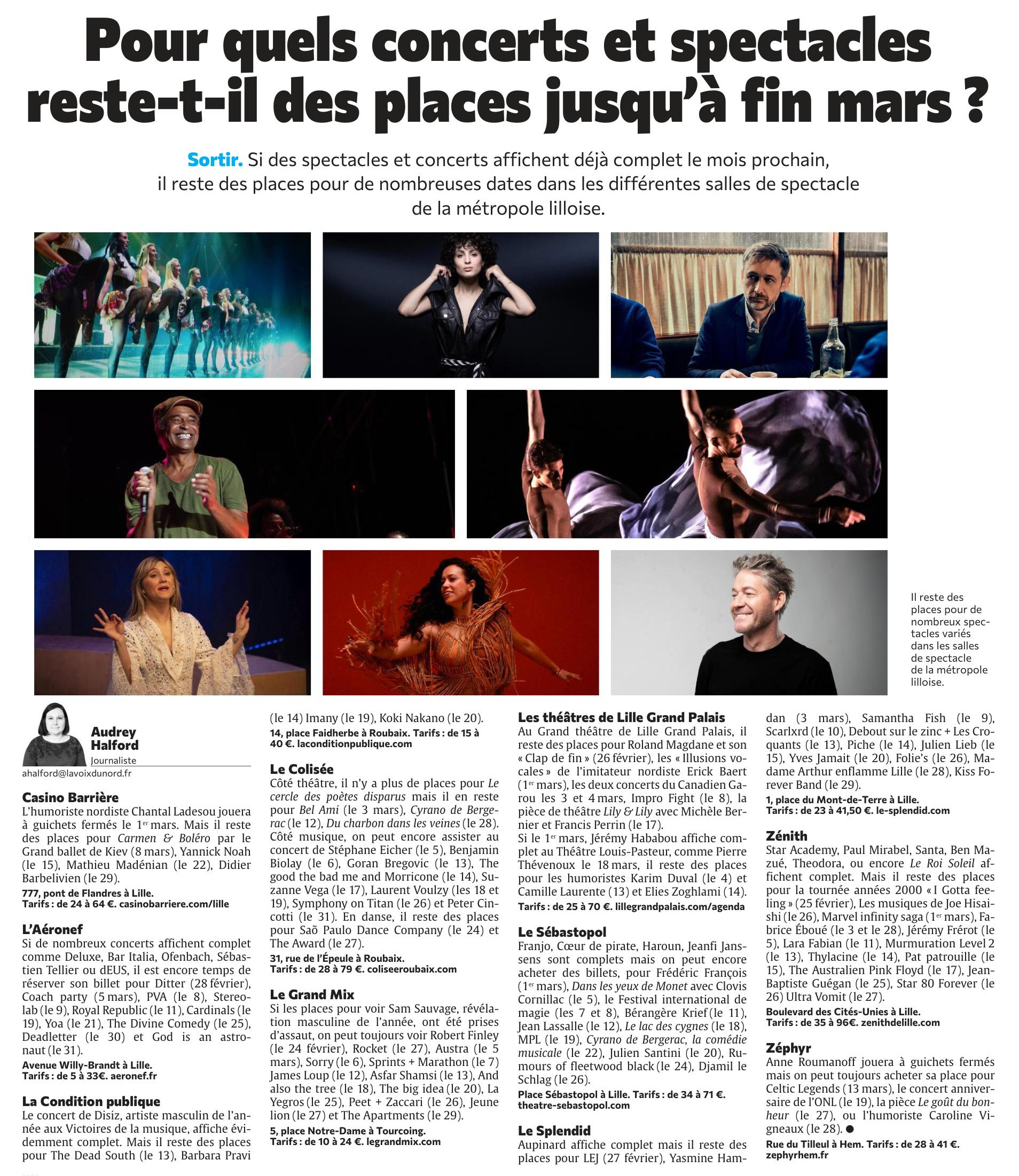 - VOIX DU NORD mardi 6 février 2023 Les spectacles à voir en février par Bruno RENOUL.