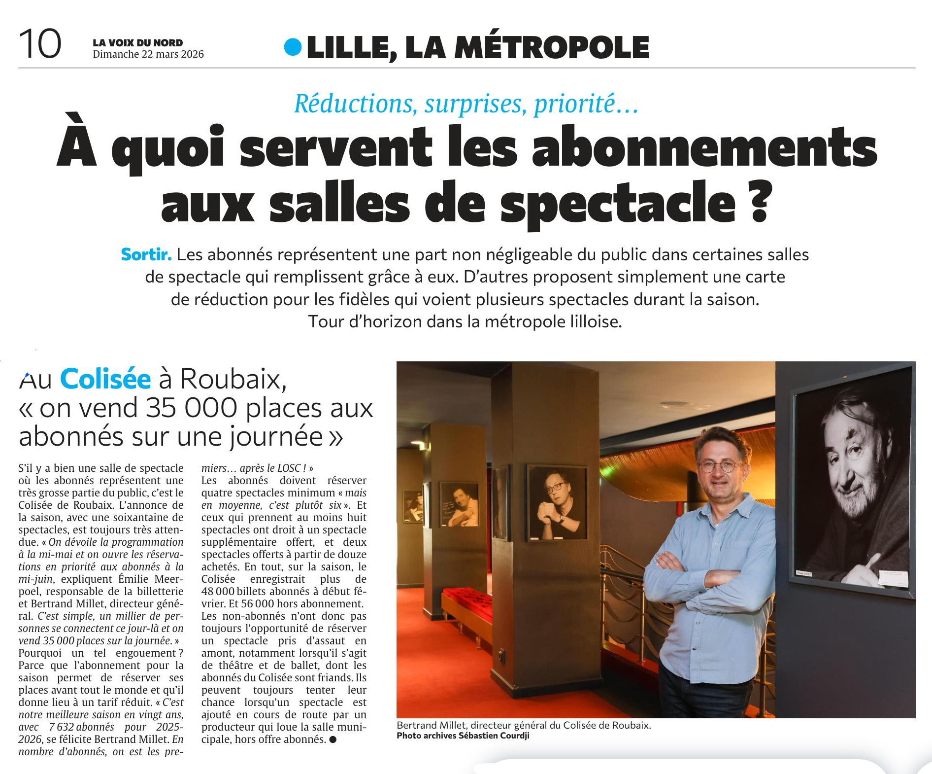 - VOIX DU NORD Lundi 1 avril 2024 : Bertrand Millet "une année exceptionnelle pour le Colisée"